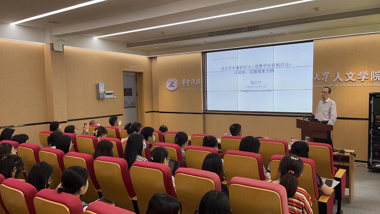 2023年5月18日上午,国际知名语言学家、加州大学洛杉矶分校亚洲语言文化系陶红印教授应邀为bw必威西汉姆联官方网站师生带来题为《语言学本体研究与二语教学的有机结合:以话题、语体现象为例》的专题讲座。