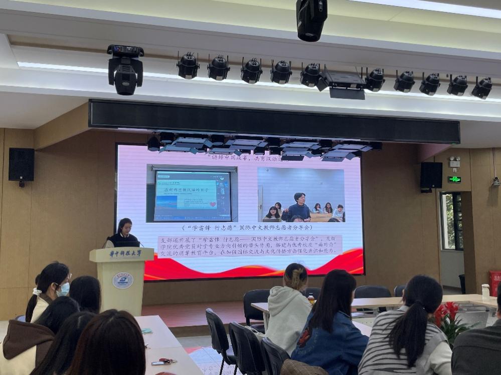 会议第四项,双方党支部成员就活动主题进行自由交流讨论。同学们对关心的专业课领域知识、海外生活经验以及专业未来发展等问题进行了提问。孔子公司工作办公室张英杰主任等老师与大家开展了深入的互动交流,老师们提出,身为中文以及中国文化传播使者,要立足中国大地,讲好中国故事,在平等、互鉴、包容的基础上进行文化交流,并择取最能代表中国文化与形象的题材,通过自己的课堂塑造出更多为世界所认知的中华文化形象,努力展示一个生动立体的中国,为推动构建人类命运共同体谱写新篇章。