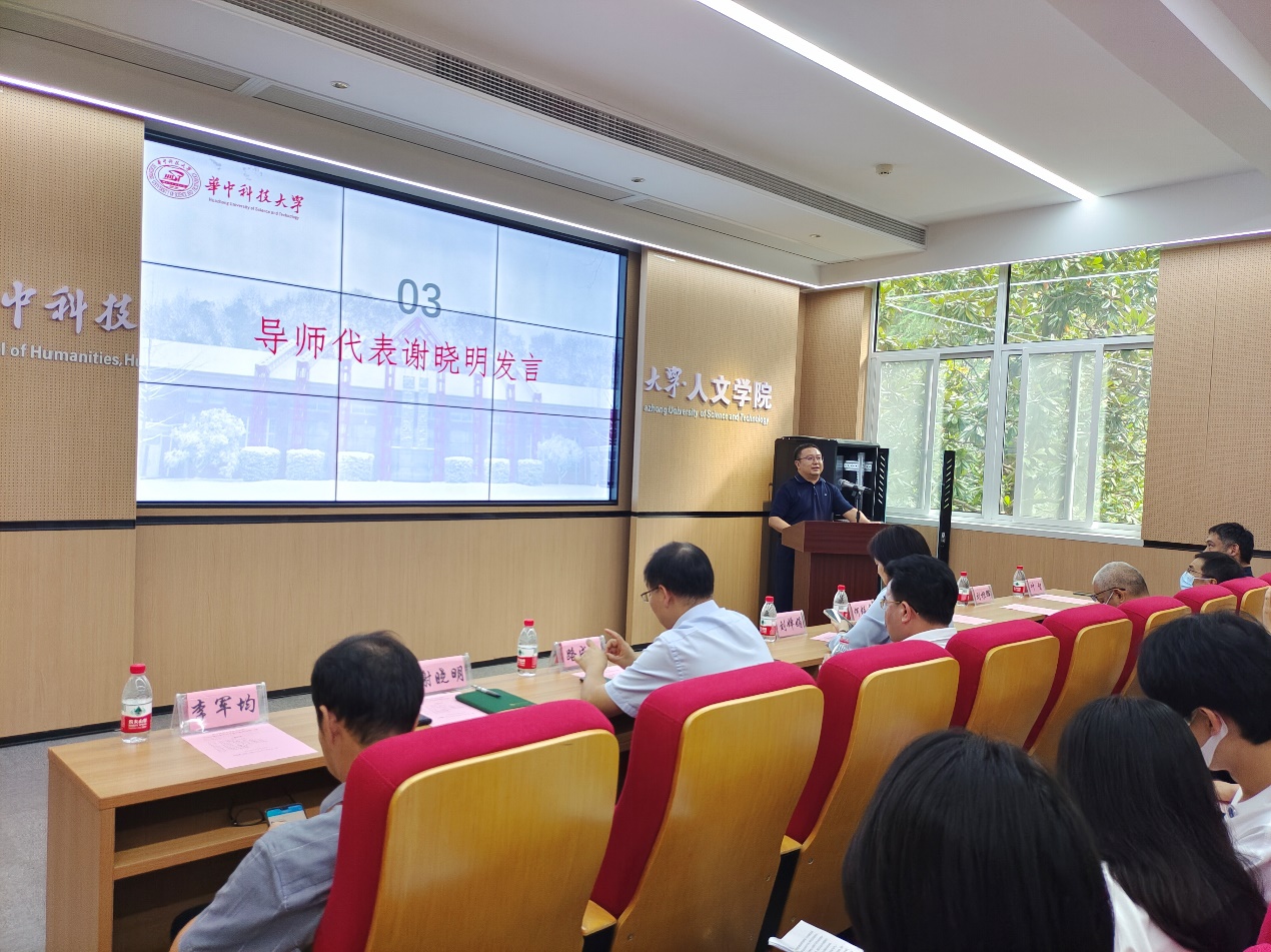 导师代表谢晓明教授发言。谢老师跟同学们分享了自己跟导师的故事,并对同学们提出了六点要求:一、处处留心,养成问题意识;二、既学又问,不能盲目迷信教材;三、懂得取舍;四、懂得自立,尽早确立自己的研究领域;五、做学问要学会整体发挥,掌握有效的方法;六、要有健康的体魄。同时也要求同学们能够处理好两种关系:一是专业和事业或职业的关系,二是理想和现实的关系。