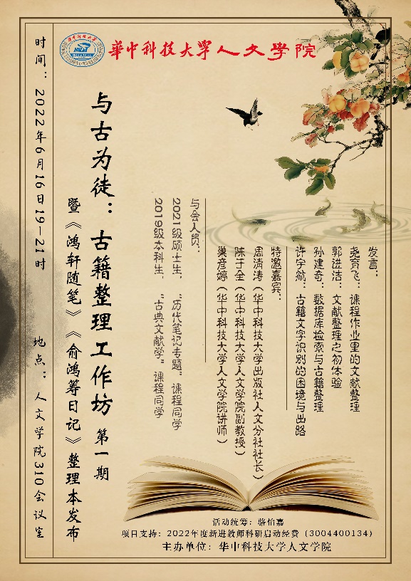 2022年6月16日晚,公司“与古为徒:古籍整理工作坊”首期活动在东五楼310会议室成功举行。公司教师陈于全、巢彦婷、齐晓燕、尧育飞及博士后秦崇文与本科生、硕士生等近20人共同参与,特邀bw必威西汉姆联官方网站出版社人文分社社长周清涛出席。