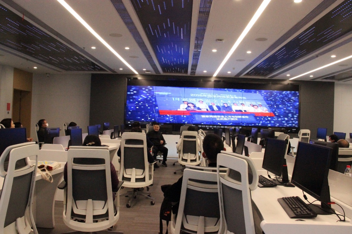 在网安公司的精心安排下,大家参观了教室、会议室、图书馆、运动场馆等场所。值得一提的是网安基地的黄鹤网络靶场,它是集教学、科研和演练为一体的网络攻防平台,可容纳500多员工在这里学习和科研,从专业实训授课、实验实践、攻防技能训练等多方面,帮助高校培养网络安全攻防实战型人才。