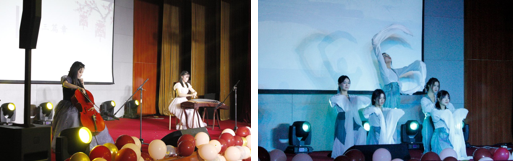 在精彩的猜歌名游戏后,晚会的进程顺利过渡到第三篇章。中文2101班的陈文麟和潘宇卉携手献上一场音乐盛宴,《大鱼》和《菊次郎的夏天》的巧妙融合,低沉的大提琴与清越的古筝缠绵共奏,乐声如泉,入人心田。“昔我往矣,杨柳依依;今我来思,雨雪霏霏。”水袖轻扬,步步生莲,由中文2101班的李逸闲、李梦茹,中文2101班的吴书琦,汉语言2002班的陈鹭晴以及来自兄弟院系的钟爱共同带来的古典舞表演《采薇》给现场观众营造了《诗经》里如梦似幻的世界。中文硕2103班的王梓杰和国学硕2104班的付紫鸢则带来歌曲演唱《New boy》,以积极昂扬的曲调和乐观向上的歌词在大家的心中注入一份力量。