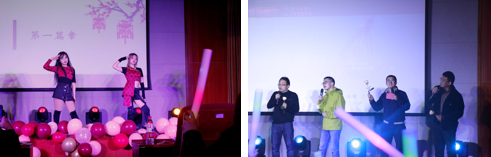 伴随着温厚优雅的吟唱,晚会的第一篇章缓缓拉开帷幕。来自中文2102班的张雅欣用一首《When we were young》带领观众回溯过往,沉浸在歌曲的意境中。汉语言2001班的戴裕和夏杨安琳带来舞蹈《Kill this love》,强有力的鼓点和k-pop的热浪迅速点燃了大家的热情。老师们也不甘示弱,王振滔、刘星、尧育飞、王勇四位老师为观众送上一首合唱《大海》。同学们纷纷举起手上的荧光棒,为老师们加油鼓劲。