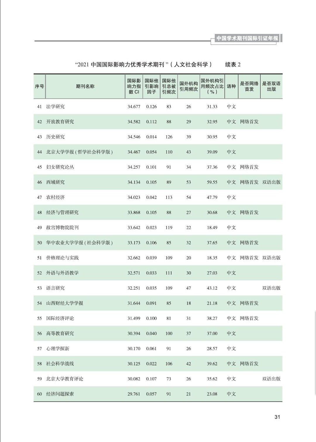 在2021年12月6日举行的“2021年中国学术期刊未来论坛”开幕式上,重磅发布了2021“科技期刊世界影响力指数WJCI”&“中国最具国际影响力学术期刊”成果,公司《语言研究》入选“中国国际影响力优秀学术期刊”(TOP 5-10%)名单。