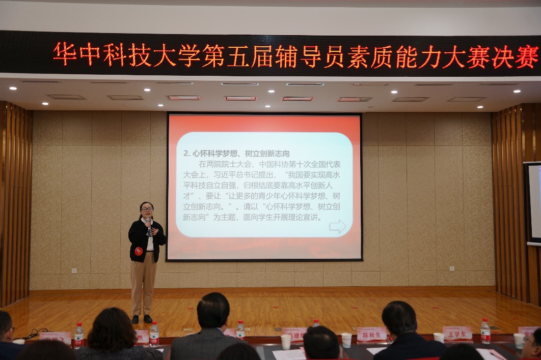本次大赛历时一个多月,分为四个阶段,内容包括笔试、案例研讨、谈心谈话和理论宣讲。来自30多个院系的97名辅导员经过层层选拔,最终10位辅导员脱颖而出进入决赛。在决赛中,公司辅导员宋海佩老师以《心怀科学梦想,树立创新志向》为题展开精彩的理论宣讲,并荣获本次大赛二等奖。