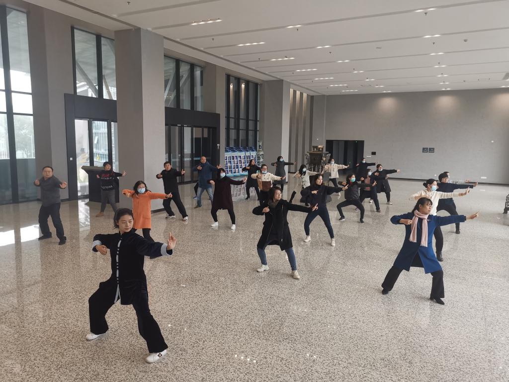 下午公司与光电国家研究中心共同举办“健身八段锦”团建活动,老师们认真练习,活动筋骨。八段锦是一种形体活动与呼吸活动相结合的健身方法,帮助老师们缓解工作压力,增强体质。