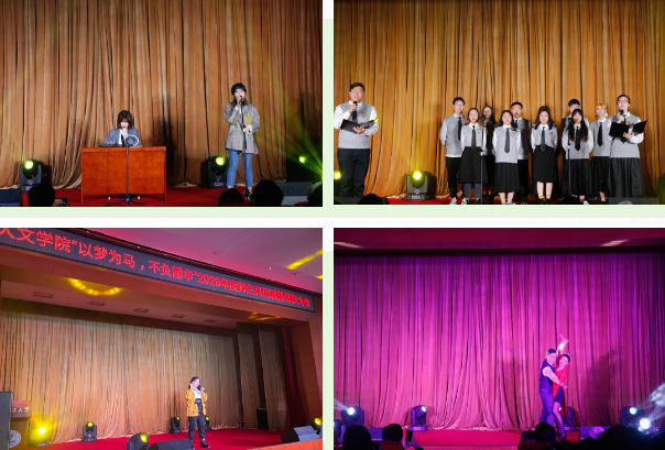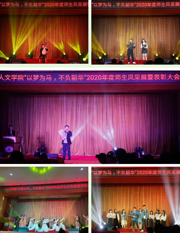 风采展的第三部分以“梦想绽放”为主题,章丽玲老师为大家带来了琵琶独奏《左手指月》;陈沩、陈劼为大家带来了动人的合唱《风吹麦浪》;中文硕2003班的《晚庭朝歌》通过两个古典舞蹈串烧令人感到古风的柔美;刘久明经理登台演唱了优美的歌曲《月儿像柠檬》,引得台下阵阵欢呼;中文硕2001班带来了合唱《这些民谣》,在悠扬的歌声中,本次晚会落下帷幕。