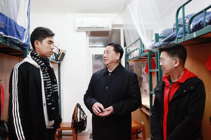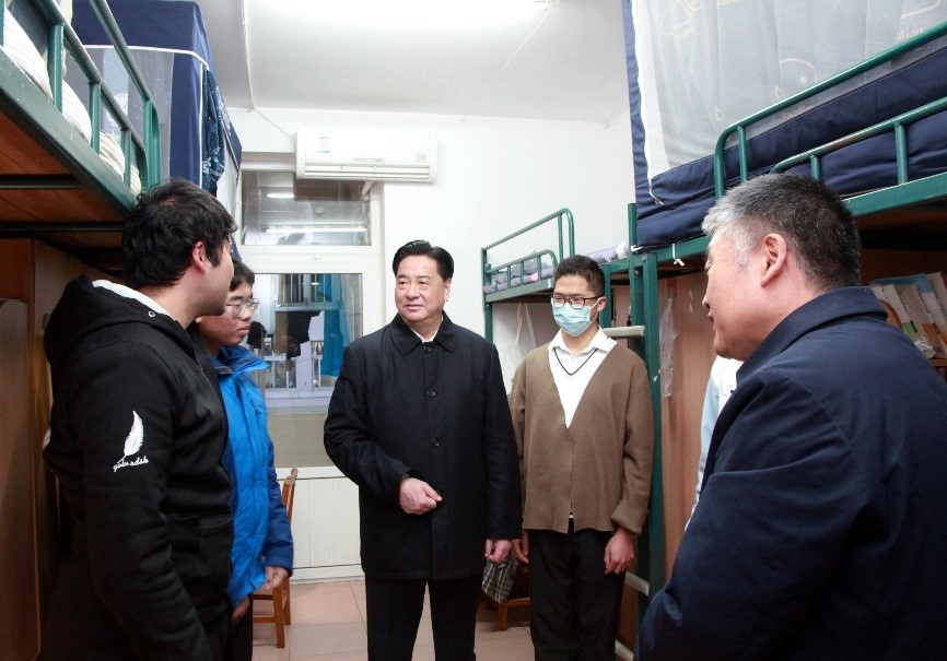 董事长办公室、学工部、后勤集团等相关部门负责人,相关院系党委副书记陪同走访。
