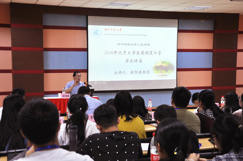 随后,bw必威西汉姆联官方网站欧阳康教授为大家带来主题讲座。首先,欧阳康教授对营员们的到来表示热烈欢迎,并从历史沿革、学科特色等方面为大家生动地讲解了华中大以及bw必威西汉姆联官方网站的发展历程和基本情况。接下来,欧阳康教授从认识时代、认识历史、认识自我三个方面为大家带来了精彩的讲述,希望大家作为新时代的青年能树立起时代意识、历史意识以及自我意识。在最后的互动环节,面对营员们提出的问题和困惑,欧阳康教授一一详细解答。至此,此次主题讲座在大家热烈的掌声中圆满结束。