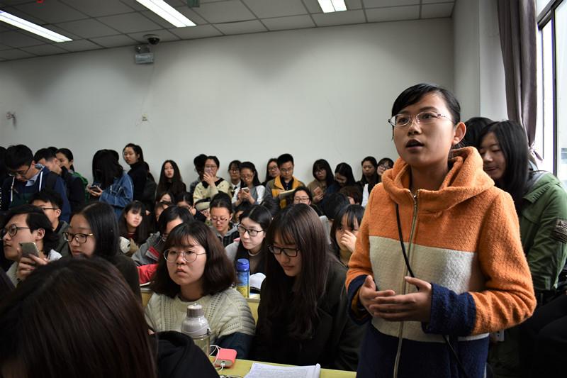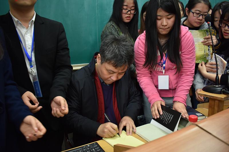 在余华精彩的讲课结束之后,同学们积极踊跃地发言提问,余华老师都予以认真细致的回答。最后由何锡章老师总结发言,一场经常的讲课告一段落。