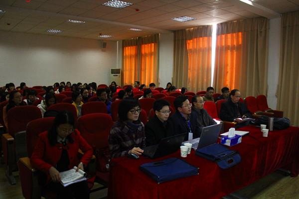 本次论坛分为两场。第一场主要涉及汉语言文字学和古代文学,由程邦雄教授主持。中国社科院语言研究所郭中首先作了题为《论汉语中小称范畴的显赫性及其类型学意义》的发言。他通过对多种语言在小称范畴的对比与分析,具体阐述了汉语中小称范畴的形式表达,证明了小称在汉语和跨语言中都有其显赫性。随后,来自北京大学中文系的齐晓燕作了题为《江有诰<音学十书•韵读>体例研究》的发言,对《音学十书》中的江氏韵读进行校勘,并考察江氏所用术语。武汉大学文公司潘明福的发言题目为《北宋时期文学撰著的编刊与传播》。他主要分析和归纳了北宋时期文人撰著的编纂,刊刻与传播三方面的类型和特点,其深厚的文学功底和抑扬顿挫的演讲方式给听众留下深刻印象。