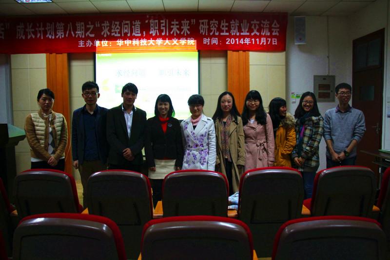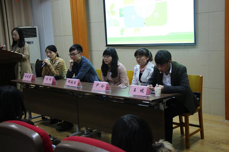 接下来,2010级硕士毕业生乔明学长、2010级硕士毕业生胡晓霞学姐、2011级语言学硕士毕业生尹玲学姐、2010级硕士毕业生王坡学长分别讲述了自己的求职经验,为大家提供一些参考。其中,现就职于中建三局的王坡学长的求职经历也引起了大家的阵阵掌声,将交流会推向高潮。在迷茫中错过了中建三局的校园招聘会,但又通过朋友上网了解了许多该企业的内部情况,奇迹般在该企业实习最后成功转正。他告诫大家忘记自己是国内一流大学研究生硕士生的身份,以一个谦卑的姿态去应聘会有更好的效果。