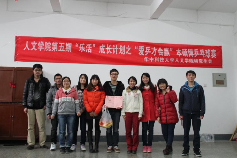 随后,比赛分别在东五楼三楼、四楼的活动室进行,赛制以小组赛和淘汰赛相结合,八支代表队分为A,B两组,以积分为规则,其中每组前两名晋级淘汰赛。期间,大四代表队一路过关斩将,先后淘汰博士生等代表队,与同样表现优异的大二代表队会师决赛。下午四时左右,这场冠军争夺的焦点之战在四楼活动室进行,各队代表队员在旁观战,不时呐喊助威。大四代表队虽然“身怀绝技”,大二代表队亦不甘示弱,你来我往之间,场上那颗跃动的黄色小球显然吸引了大家的全部注意力。期间,几个回合的僵持之中,大四代表队队员的一次突然的精彩变线得分赢得了场边的阵阵喝彩,也将本场比赛气氛推向高潮,最终,大四代表队以大比分3比1的成绩赢得了本场比赛的胜利,荣登冠军宝座。