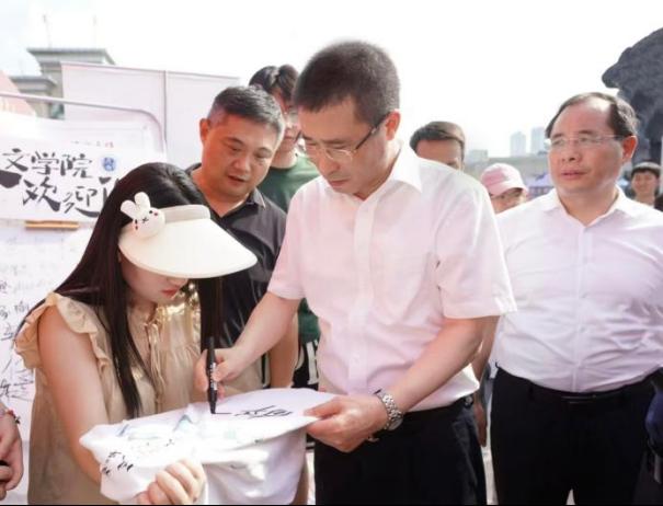 公司党委书记张广军一行亲临公司迎新现场,与新生们进行了亲切交流,并慰问了现场的工作人员与志愿者团队。张书记对公司在历史文化资源创造转化及创新发展方面所取得的成就给予了高度肯定,并鼓励新生们要知行合一,努力成为一名优秀的人文人才。同时,张书记还为新生们题写了“奋斗青春”的寄语,寄寓了对他们美好未来的深切期望。