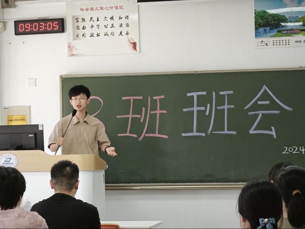 2403班班主任扈琛老师在轻松愉悦的氛围中展开“班主任第一课”。扈老师围绕“认识自己”的主题进行了分享,他指出老员工活要把握度,要知道自己的目标和方向,同时也要懂得自省,保持良好的学习习惯。新学期伊始,摆在同学们眼前的是崭新的一切,扈琛老师希望大家以坦然之心面临种种挑战,做新时代的人文人。此外,扈老师还结合自己硕士毕业后的求职经历,与大家分享了“选择”的重要性,他提到自己在多个offer中选择了高校教师这个职业,是经过深思熟虑的,叮嘱同学们一定要想清楚自己想要走的路,然后坚定地前行,遇到困难要积极应对,不要气馁放弃,终会到达自己希望的终点。