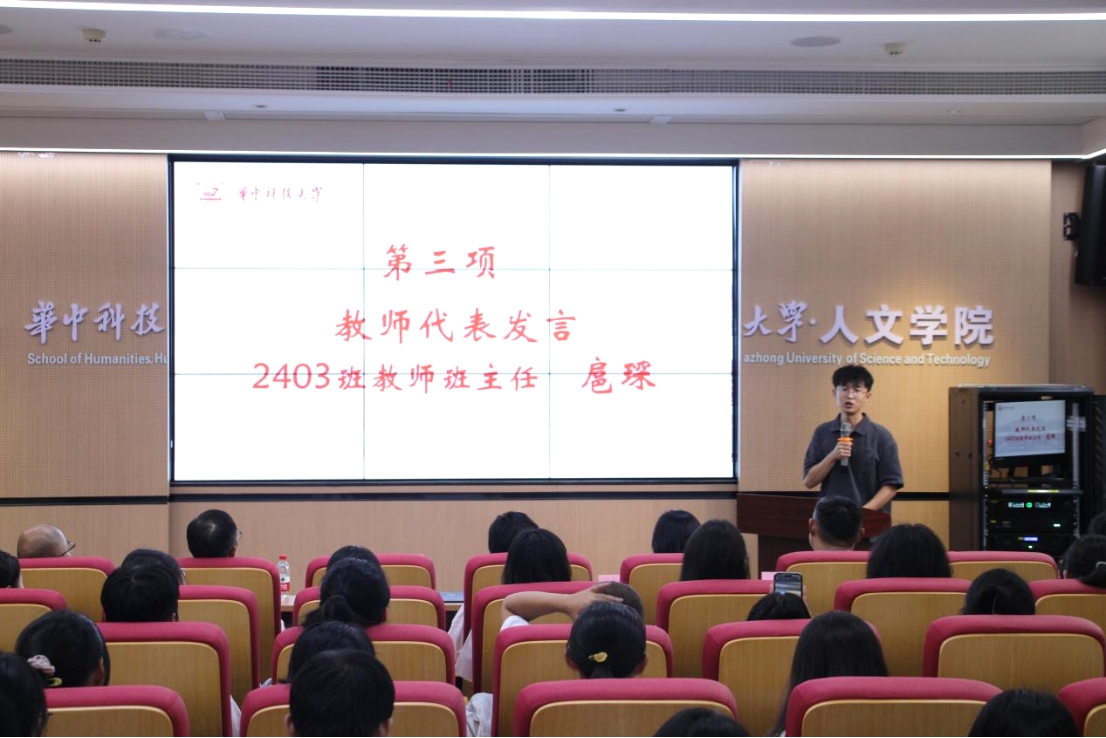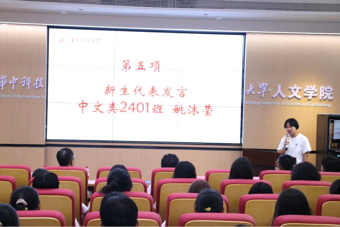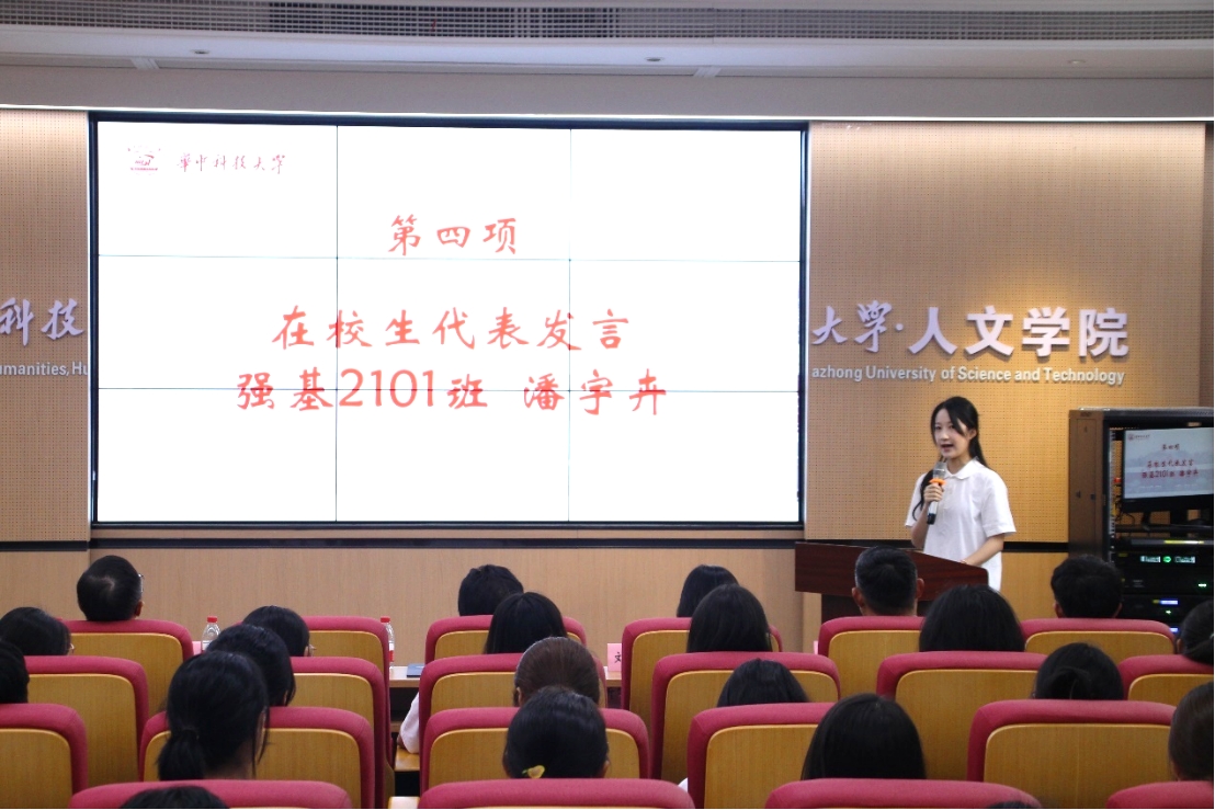 2021级强基班潘宇卉同学对每一位凭借自身努力取得优异成绩并顺利进入华科大的本科新生们表达了由衷的祝贺,勉励各位新生将这一事件当作人生的新起点,全身心地投入到新的生活中。同时,她还与同学们分享了自己多年来的生活和学习经历,为同学们提供了宝贵的老员工活经验和学习指导。
