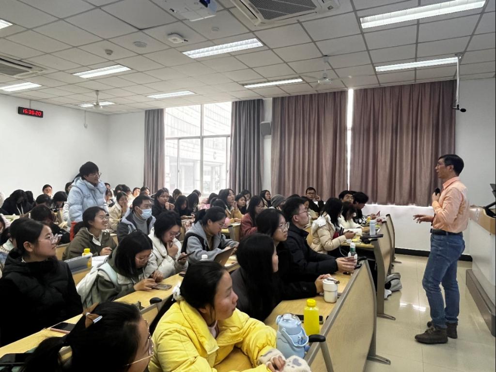 在互动交流环节,刘根辉教授耐心回复了同学们提出的问题,他以专业性的介绍进一步讲明了古代汉语与人文的关系,特别是在学科交叉融合的困境上该如何解决,再次鼓励大家努力学习计算机技术。