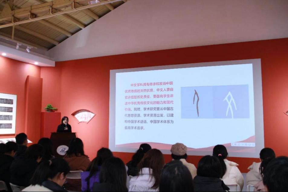 面向未来创新,刘书记表示,数“智”人文是人文学科未来的发展方向。在传承与传播古籍优秀文化的同时,也应该加强文化创新,实现古籍数字化。她向同学们介绍了一系列重要的数字人文平台,包括高校古文献资料库、全国古籍普查登记基本数据库、中国历代人物传记资料库、宋元学案知识图谱以及唐宋文学编年地图等。刘书记鼓励同学们积极进取,努力成长为既精通数字技术又饱含人文情怀的创新型人才。