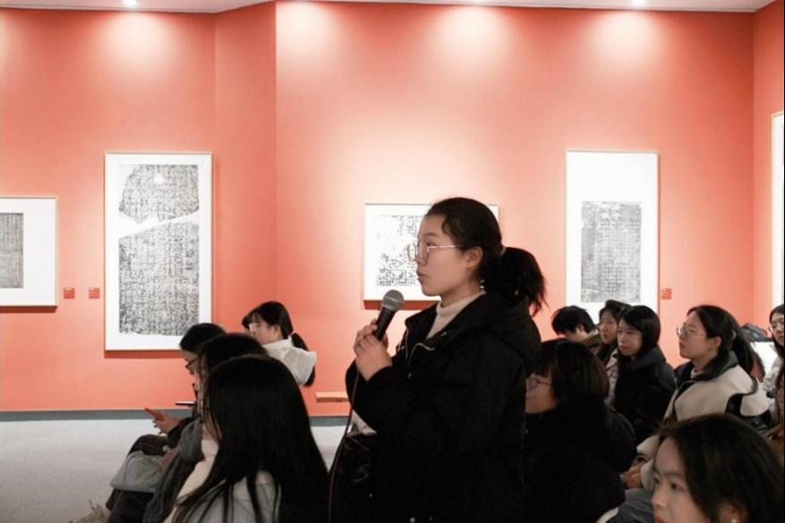 2024年12月17日,bw必威西汉姆联官方网站公司党委书记刘婵娟以“赓续历史文脉,谱写当代华章”为题,于校史馆“喻见典藏”历代金石拓片展展厅为2024级新生带来了一节生动的思政课。公司党委副书记叶智,辅导员王勇、杨爽、罗微参加了本次思政课。