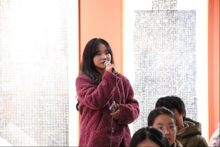 “身处新时代,面对新形势,人文学子该怎么做?”刘书记与在场的新生进行了互动交流。四位新生分别从提升个人素养、依托公司平台资源、拓宽全球视野等方面,结合新时代下数字人文的背景积极地发表了自己的看法,表示在新的发展进程中,新时代青年要做好文化传承与创新的工作,增强文化自信,担负起推动文化繁荣、建设文化强国的历史使命。