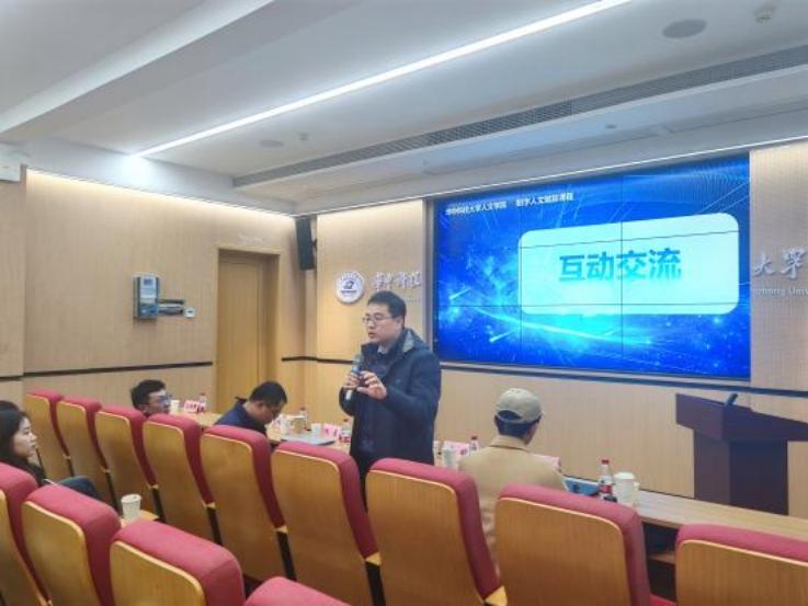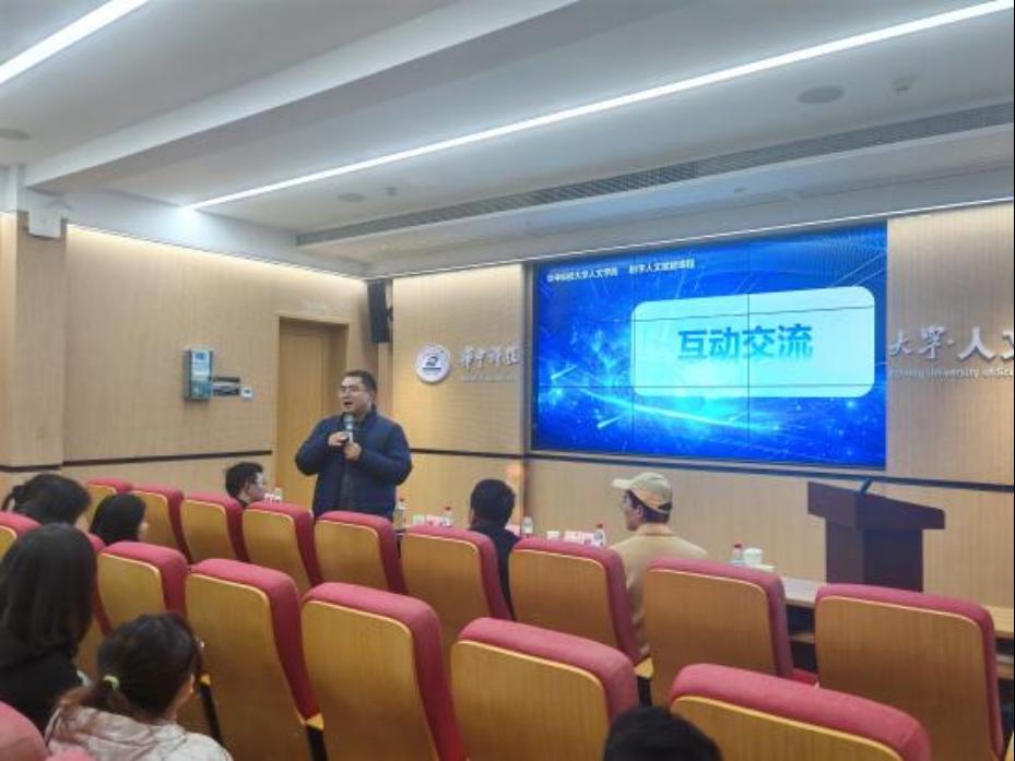 在交流互动环节,同学们针对如何在大学期间有意识地培养数字与人文结合的技能,并最终在职场中担任重要职位提出了自己的问题。冷谦益认为同学们首先要从不同行业的就业需求中反推在校期间的能力培养,其次要注重在员工工作中锻炼团队组建、沟通协调等相关能力,尽早掌握一些基础软件,在今后的求职中展现独特优势。徐联淇进行补充,他以自身短视频创作经历为例,说明不断学习的重要性。