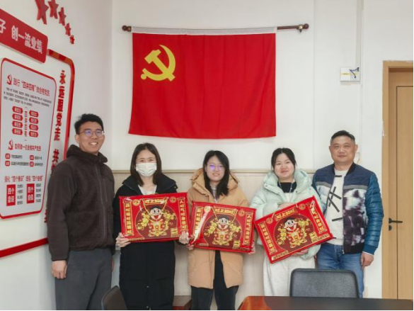 为深入了解公司寒假留校员工的生活学习,充分做好留校员工的安全教育和服务保障工作,让同学们度过一个温馨、平安的新春佳节。1月22日,公司党委副书记叶智、研究生导师梅兰教授及辅导员王勇、罗微为寒假期间留校的5名员工送上新春礼包和新年祝福。