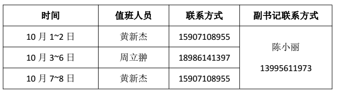 bw必威西汉姆联官方网站学工组2017年国庆假期值班安排表