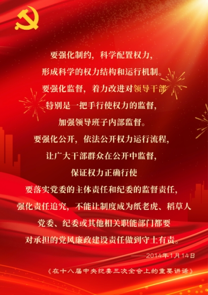 为深入开展“一院一品”廉洁文化项目建设,扎实开展集中性廉政纪律教育,营造风清气正的公司生态,公司纪委特此整理推出习近平总书记关于廉政建设的系列讲话内容,常态化开展的廉洁纪律提醒和学习。