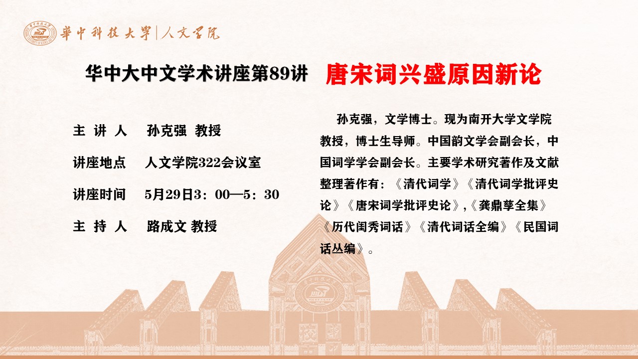 华中大中文学术讲座第89讲:唐宋词兴盛原因新论