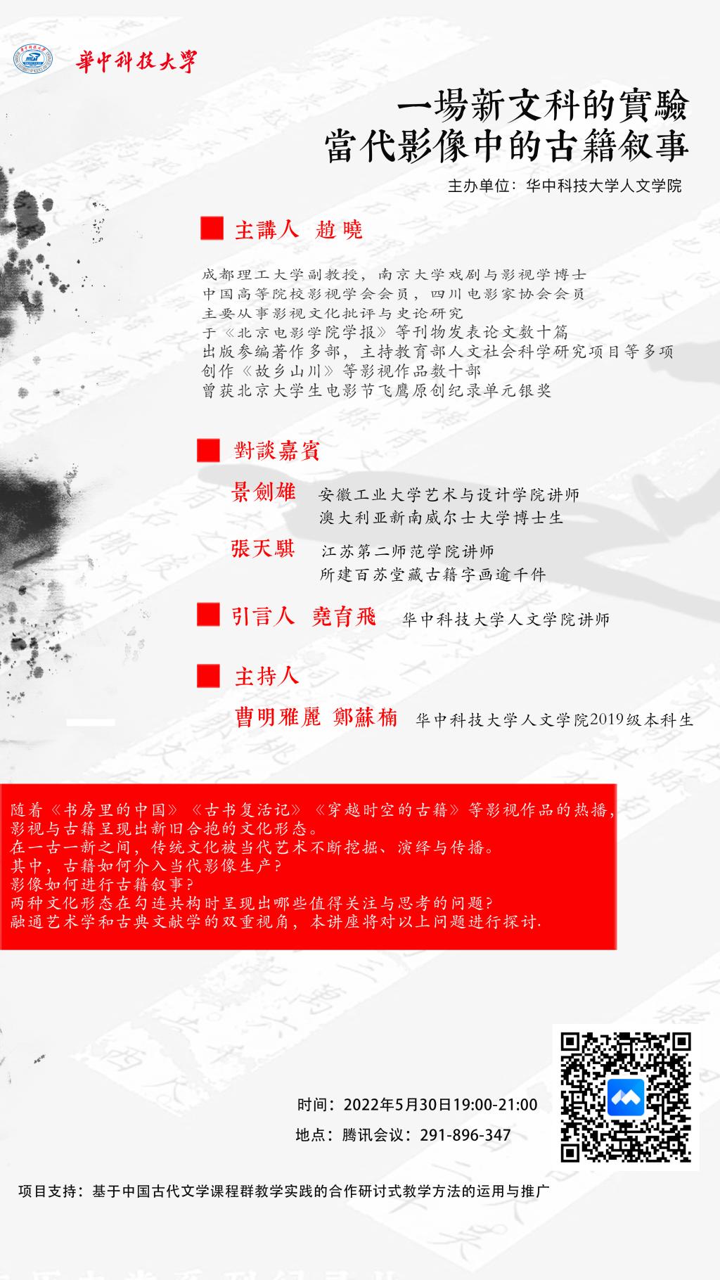 华中大中文学术讲座第110讲(线上讲座):一场新文科的实验:当代影像中的古籍叙事