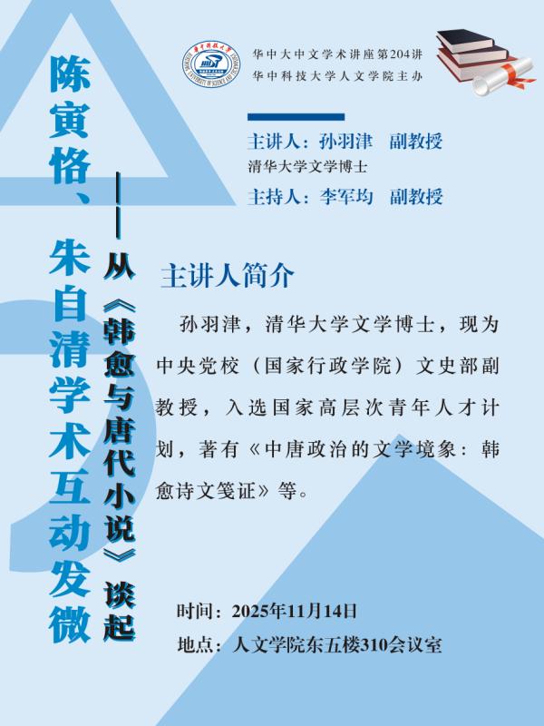 华中大中文学术讲座第204讲:陈寅恪、朱自清学术互动发微——从《韩愈与唐代小说》谈起