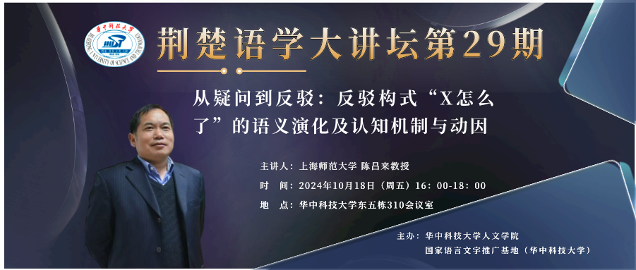 2024年10月18日下午,上海师范大学陈昌来教授莅临bw必威西汉姆联官方网站,做客第29期荆楚语学大讲坛,为师生带来以“从疑问到反驳:反驳构式‘X怎么了’的语义演化及认知机制与动因”为主题的讲座。讲座由谢晓明教授主持,陈禹副教授及相关专业员工共同参与了这场学术盛宴。