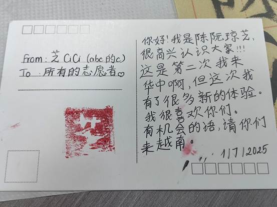 志愿者 吴圣伊:“‘各美其美,美美与共’不再是一句口号。当看到他们用不太熟练的中文兴奋地分享剪纸作品,或是在黄鹤楼上凭栏远眺陷入沉思,我真正感受到文化交流如春风化雨,润物无声。何其有幸,成为这座桥的一砖一瓦。”
