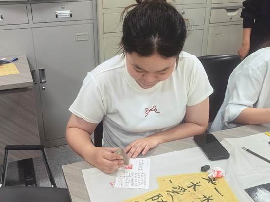 越南 陈阮琼芝:“又来了!今年我是夏令营的‘老朋友’了,本以为体验过书法、剪纸这些,对动手活动没那么新鲜了。但拿起刻刀,在石头上刻下自己名字的那一刻,感觉完全不一样!那‘叮叮当当’的声音特别有意思,要很小心,又得有点力气。看着石头粉末掉下来,名字的笔画慢慢出现,最后蘸上红红的印泥盖在纸上——哇,它真的‘活’过来了!就像把名字刻进了时光里,特别神奇。这次夏令营又让我发现,中国文化真是宝藏,每次来都能挖到新的惊喜!”
