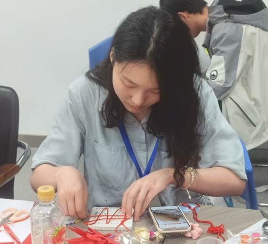 韩国 陈美利:“编织中国结趣味无穷,完成作品时的成就感难以言喻。武汉的热情与华科大的学术气息,是我今夏最珍贵的宝藏。感谢每一位耐心指导的老师和志愿者朋友!”