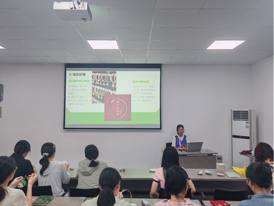 趣味知识问答环节,主持人与同学们积极互动。“一根彩绳,缠绕传统祝福;指尖翻飞,编织平安喜乐。”通过对编五彩绳的讲解,让中外学子对端午佳节的习俗有了更深入的理解。