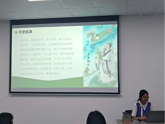 “端午临中夏,时清日复长。”活动伊始,主持人吴圣伊为大家介绍了端午节的起源及传统习俗,让同学们对这个传统节日有了初步的了解和认识。