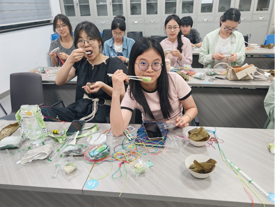 端午粽香飘,四海学子聚。在充满传统文化氛围的活动现场,中外学子围坐一堂,共同品味承载千年底蕴的美味粽子。翠绿的粽叶揭开,软糯的糯米裹着鲜香的馅料,瞬间勾起大家的食欲。粽叶的清香、糯米的软甜,与欢声笑语交织,共同谱写了一曲动人的文化交流乐章。