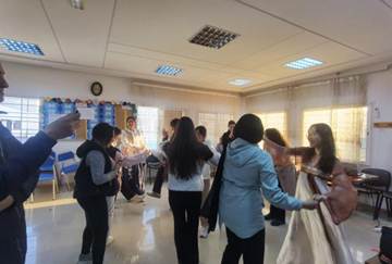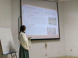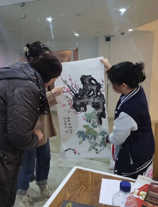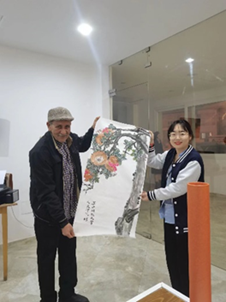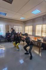 汉语语言教学结束后的第二天,即1月26日下午,实践队来到当地中学开展文化教学,带领员工们体验了丰富的文化艺术课。唐雯诗带来剪纸和编织中国结的教学。周雨姗和王美文分别进行中国舞与武术展示,员工们沉浸其中,掌声热烈。为了能够让每一位员工都能深度体验这次的教学内容,教学组开展了剪纸、舞蹈、武术三类活动的分组学习。分组学习后,员工们同教学组热情交流,盛情邀请教学组全体成员共跳突尼斯传统舞蹈,并一起合唱了中国的流行歌曲《最炫民族风》。