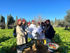 1月26日上午,实践队员来到橄榄种植园区进行产业调研。当地橄榄园兼具特殊教育机构和慈善机构的功能,在收养残障儿童的同时,也给一些残障人士提供工作机会。据工作人员介绍,突尼斯人不仅食用橄榄果实,还摘取橄榄树果实进行食品加工,利用橄榄榨取橄榄油,而橄榄油的制作则分为手工生产和工业化生产两种生产方式。在园区内,实践队员参观了橄榄油的手工生产过程:将橄榄用石磨压碎,再放进桶中踩碎,静置沉淀取上层清液即为橄榄油。参观结束后,实践队员在当地人的指导下共同种下了一棵承载着希望与友谊的橄榄树。随后实践队又走进橄榄油生产工厂,近距离参观了橄榄油生产线、储存间、检验室与实验室,感受到了橄榄油制作的现代化和工业化。