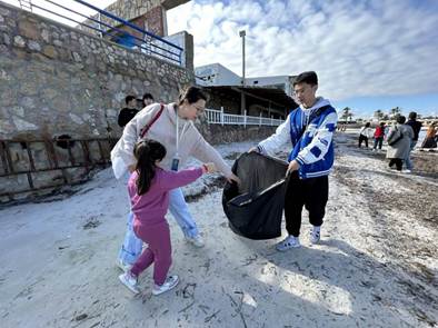 地中海孕育了突尼斯独特的历史文化,也为其经济发展提供不竭动力。海洋渔业是当地经济的重要支柱之一,大海沙滩的美景也为旅游业带来了发展机遇,吸引着世界各地的游客前来欣赏。因此,突尼斯人十分重视对海洋生态环境的保护。实践队了解了natre grand blew项目,该组织致力于保护海洋生态系统,通过拾取海洋垃圾并对其进行手工处理制作出可循环使用的海洋环保用具,同时让残疾儿童参与到制作过程中,将部分手工制品售卖以达到补助目的。此外,实践队师生还在big bule海洋保护协会的组织下在海边捡拾垃圾,身体力行地保护海洋生态,保护海洋环境的意识也更加深入人心。