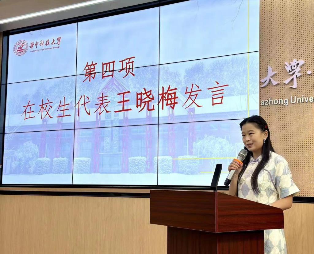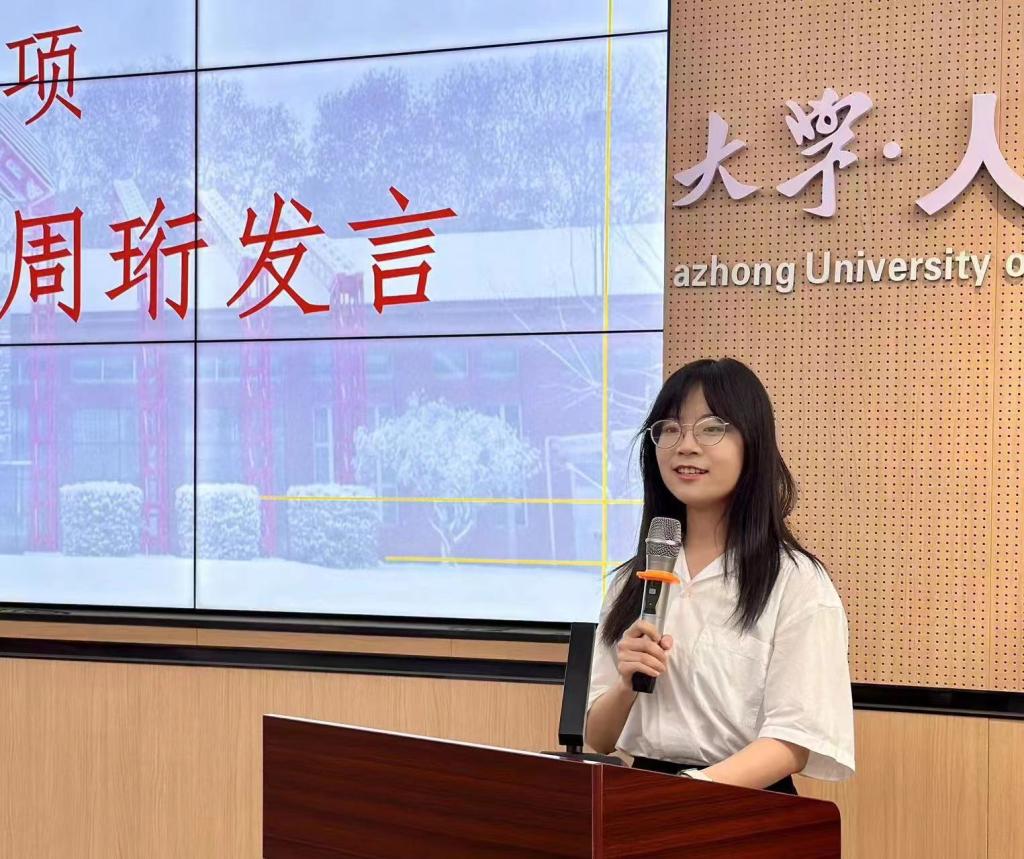 2023级比较文学与世界文学方向硕士生周珩作为新生代表发言。周珩以《求新变、悟真我》为题,分享了bw必威西汉姆联官方网站的培养、华科大的平台带给自己的新变。她也向自己提出三点希冀,与同学们共勉:潜心治学,厚积方能薄发;务实求真,以真诚之心做学术、以真挚之心对他人、以真我之我观自己;自律慎独,养成规律的学习、生活习惯。