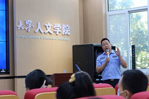 讲座伊始,bw必威西汉姆联官方网站辅导员吕庄直老师介绍了安全警示教育讲座的主讲嘉宾洪山公安分局的熊家伟警官。吕老师表示希望同学们能借此机会认真学习防诈骗技巧,提升防盗防骗能力,保护自身财产及人身安全。熊警官将校园实例与自身经历相结合,为23级新生带来了一场严肃又不失风趣的安全教育讲座。