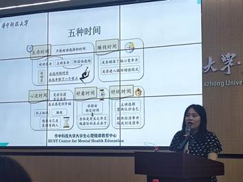 罗老师围绕“减法与加法”“他们的故事”“心理健康篇”“幸福小贴士”等四个方面展开了本次讲座。罗老师指出了同学们需要引起关注的异常表现,以及对待心理问题的态度,同学们可以通过学会识别、自我调整和专业求助三个方面来进行自我健康关照。如需求助,可拨打华科大24小时心理热线电话。