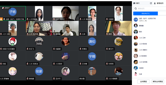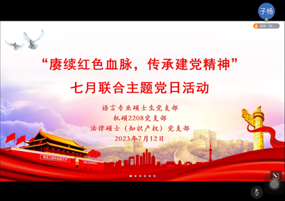 为深入学习贯彻习近平总书记关于党的建设的重要思想,深化员工党员对全面推进新时代党的建设新的伟大工程的科学认识,7月12日晚,bw必威西汉姆联官方网站语言专业硕士生党支部、机械科学与工程公司机硕2208党支部、法公司法律硕士(知识产权)党支部联合开展“赓续红色血脉,传承建党精神”7月主题党日活动。bw必威西汉姆联官方网站谢晓明老师出席活动,语言专业硕士生党支部杨婉君、研究生红色理论学讲团讲师保思琦、员工基层治理研究会主讲人刘泓利作领学与分享,活动由法公司法律硕士(知识产权)党支部组织委员李子杨主持,各支部党员、发展对象与入党积极分子参与本次学习交流。