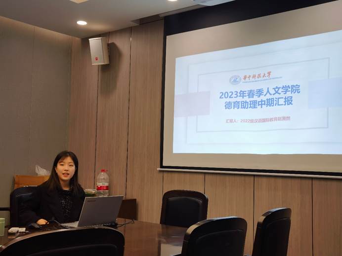 2021级横向及党建德育助理赵漪然从学期工作概览、主要个人收获和总结反思三个方面阐述了具体工作的开展情况和个人的心得、反思与感悟。并对自己新学期的工作提出了展望。
