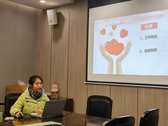 2020级横向及就业德育助理郑好主要从横向带班与就业工作开展、反思、工作展望三个方面汇报本学期的主要工作,针对就业工作中的重难点工作进行了展示和分享。结合个人工作经历与纵向工作特点对自身的工作开展做出了几点反思。