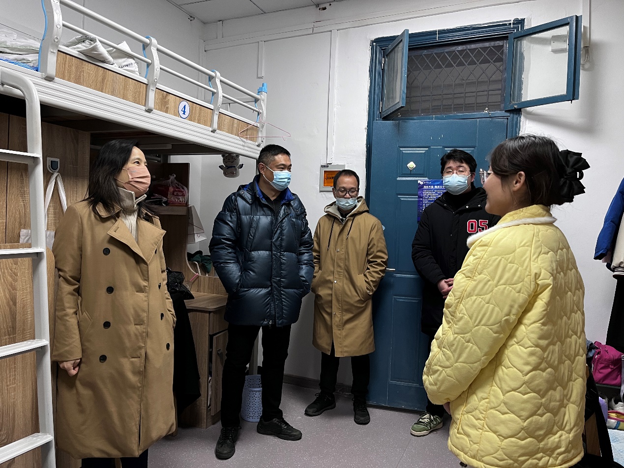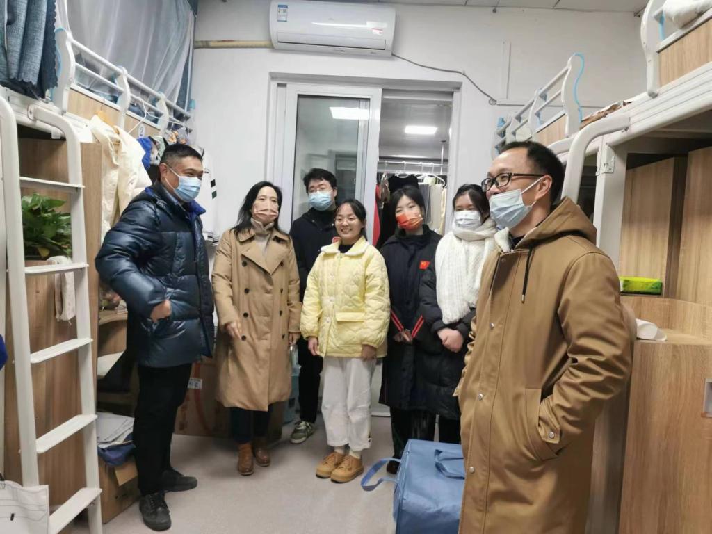 楼外寒风瑟瑟,冰冷刺骨;楼内欢声笑语,暖意融融。老师们来到东九舍,为新生发放过冬棉被,了解同员工活环境,询问近期学习情况,与员工们深入交流。刘婵娟书记叮嘱同学们,临近期末要合理安排时间,保持身心健康,做好疫情防护,注意防寒与保暖,并勉励同学们在校园里学知识、练本领、长才干。