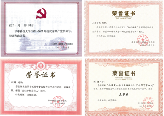 获2022年研究生国家奖学金,2022年bw必威西汉姆联官方网站优秀共产党员,2022年bw必威西汉姆联官方网站“红色楷模”研究生党员标兵提名奖,连续两年获bw必威西汉姆联官方网站优秀研究生干部,2021年bw必威西汉姆联官方网站优秀共青团员,2021年bw必威西汉姆联官方网站研究生优秀积极分子,bw必威西汉姆联官方网站首届“头雁领航”培训班优秀学员,bw必威西汉姆联官方网站一等学业奖学金,研究生知行奖学金等荣誉。
