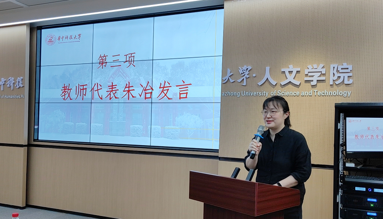 新生教师代表朱冶老师嘱咐同学们,一是要修己明德,牢记华中大校训,在学问自得中不断变化气质;二是要文武兼备,在专业学习之外,注重锻炼实操能力;三是在大学四年生活中寻觅知音,诚恳请教,虚心学习;四是逍遥游艺,除了专业学习之外,拥有真正的兴趣爱好,在运动、艺术等相关活动当中陶冶性情,全面发展。